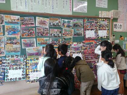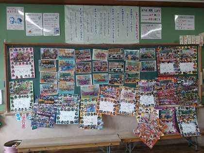 今までの活動や生活の様子を写真にして残してきましたが,黒板に貼ってみると黒板からはみ出すほどの思い出があふれています。