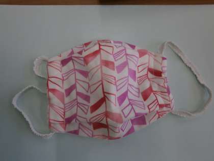 1枚目はガーゼを使ったかわいいマスクです。赤ちゃんの「前掛け用」の生地の余りを使って,お姉さんが作ってくださったそうです。
