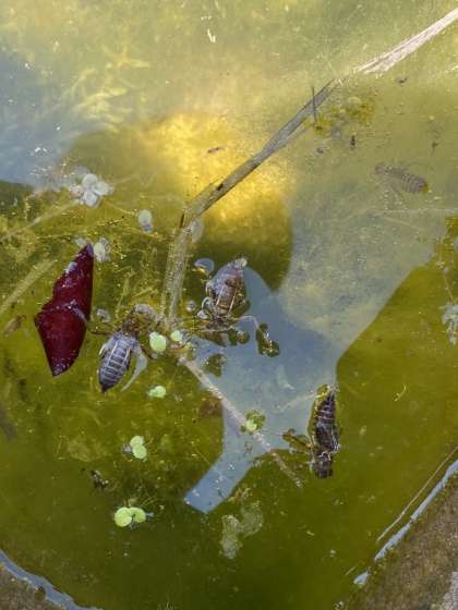 学校の池に,ヤゴ(トンボのよう虫)を発見!