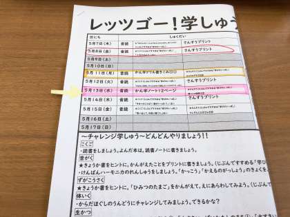 きょうは,音読,かん字ノート12ページ,さんすうは,「じぶんですすめる『学びのいっぽ』」をする日です。