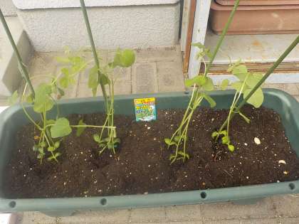 つくし畑のそばのプランターで,夏野菜を3種類育てています。