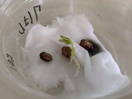 たねを入れてから25日目。ついに種から根をはり出しました!