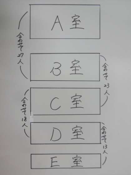 ・A〜Eの5つの部屋に分けて入ります。