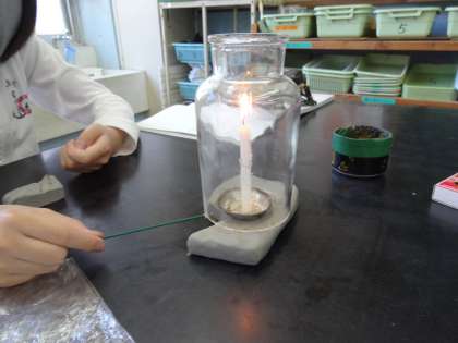 「ものを燃やし続けるにはどうすればいいのかな?」を確かめるために,いろんな方法で実験をしました。