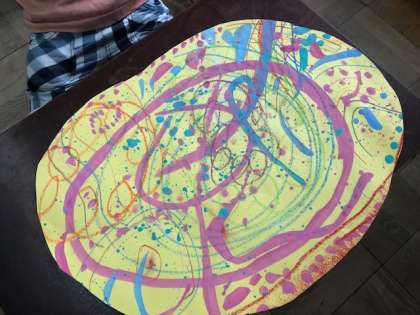 図画工作科でふしぎなたまごををつくりました。パスやコンテ,絵の具を使っていろいろな模様を画用紙に表現しました。