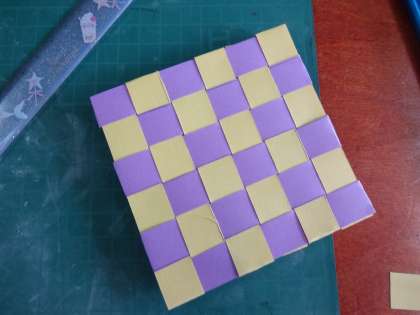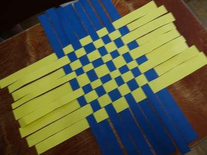 紙を切り編んで,コースターやしおりなどいろんなものを作っています。