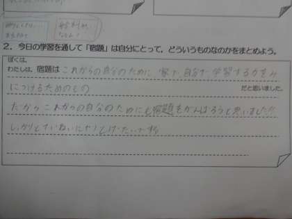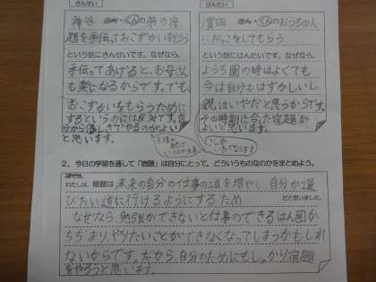 みんなで意見を出し合う中で,宿題とは『自分のため』にするもの。