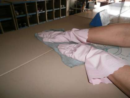たくさんの子どもたちが触れるところを中心に,消毒をしています。
