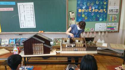 夏が暑い京都の生活の工夫を京町屋をモデルにみんなで考えました。