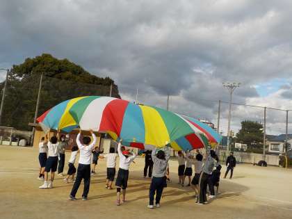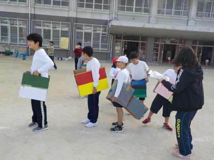 交流会では,小学生と中学生がペアで走ったり,それぞれが作った電車に乗って走ったり,仲良くバルーンを楽しんだりしました。