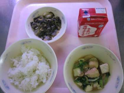 「かしわのすきやき」は,九条ねぎを使った地産地消の献立でした。色合いもよく,とうふや麩などによく味がしみこんでおり,美味しい献立でした。