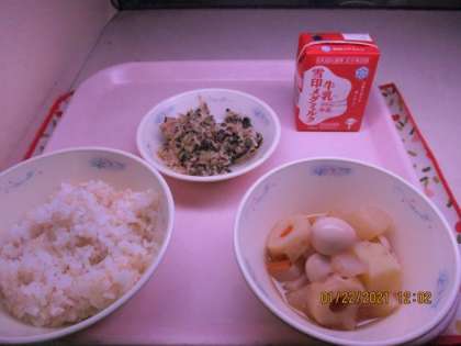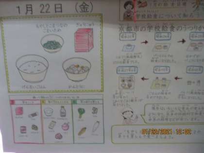 ・「もやしとこまつなのごまいため」が,しゃきしゃきしていて,とてもおいしかったです。「げんまいごはん」がもちもちしていて,おいしかったです。「かんとうに」のじゃがいもが,あじがしみていておいしかったです。またたべたいです。(1年)