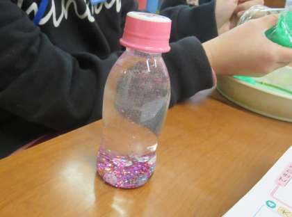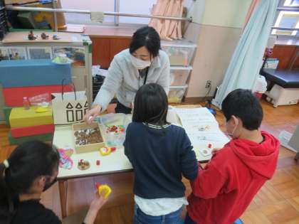 スノードーム作り・木の実のマグネット作り・スライム作りのコーナーで,それぞれ作りたいものを選びました。子どもたちは夢中になって作り,できあがったもので楽しく活動していました。