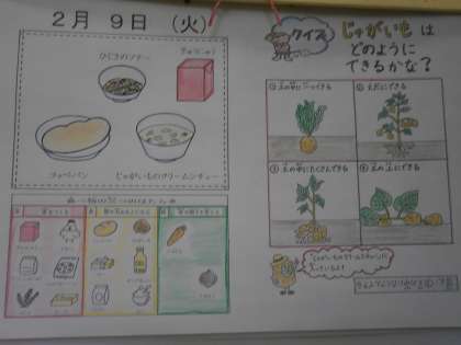 ・じゃがいものクリームシチューがすごくとろとろしていておいしかったです。にんじんがやわらかくて,あまくて,おいしかったです。(2年)