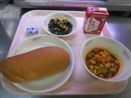 給食には,たくさんの野菜が出てきます。今日の給食では,ほうれん草,にんじん,たまねぎ,コーンなどの野菜が使われています。野菜には,体の調子を整える働きがあります。しっかりと食べて,毎日元気に過ごしてほしいです。