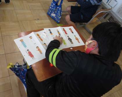 子どもたちは「この服かわいいよ。」「着てみたいな。」と,興味をもって学習することができました。