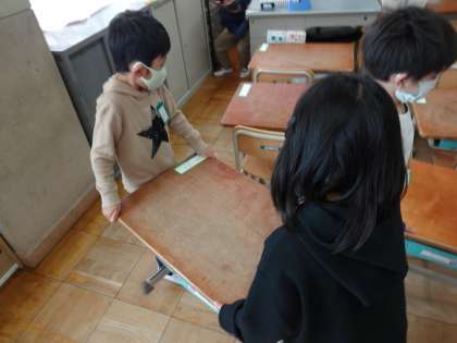 6年生が掃除の仕方を教えに来てくれました。