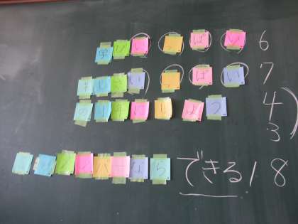 教室に隠されたカードを一人一枚探し出し,カードを組み合わせてメッセージを完成させます。