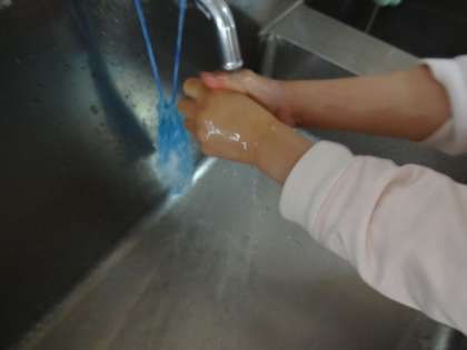 どんぐりコロコロの音楽に合わせて,1人でもしっかり手洗いをすることができます。
