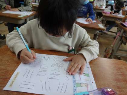 ひらがなを勉強する前に,しっかりと線の上をなぞる練習をしました。