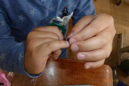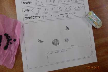 「それじゃあ,植える前に種としっかりお話をしようか。」と種の観察をしました。