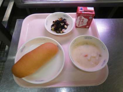 「ミルクコッペパンとじゃがいものクリームシチューは,いっしょにたべたらとってもおいしくて,クリームがこだわってつくっているとわかってすごかったです。」(3年)