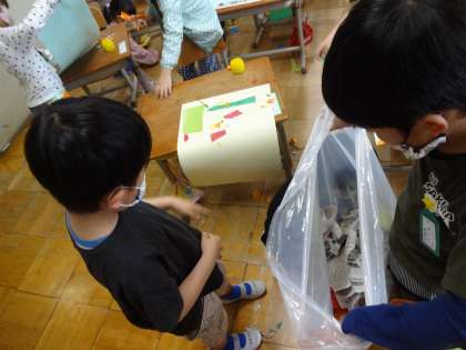 教室の床を見てみると,図工で切った紙が…すごいことになっています。