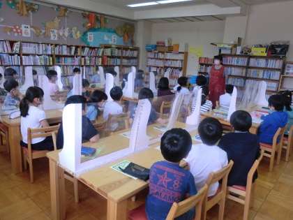図書館オリエンテーションがありました。読書ノートの使い方や本のラベルなどについてのお話がありました。後半は本を選んで静かに読みました。やはりみんな本が好きですね♪