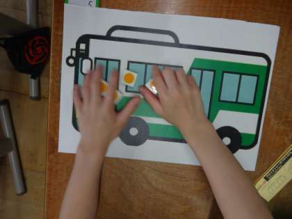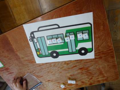 算数で数図ブロックを人にしてバスに乗ったり降りたりの操作活動をしました。