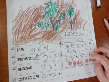 記録用紙の1コーナーにアサガオへのメッセージを書いてみると…