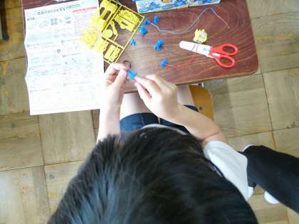 実験道具を組み立てています。「プラモデルみたいで楽しい!」とみんな楽しんでやっていますが,これがなかなか大変。。