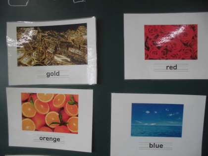 色の言い方を知った後,色鉛筆で虹を描きました。