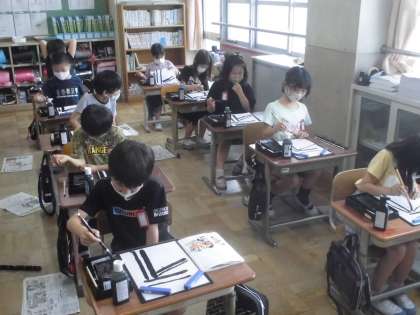 どのくらいの量の墨液を含ませるとちょうどいいのか,何度も試しながら進めています。