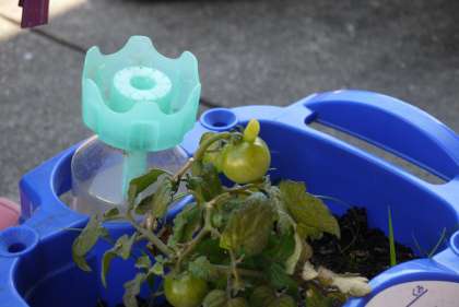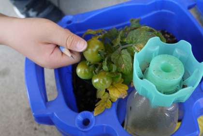 ミニトマトが少しずつ赤く色付き,あと少しで収穫できそうです。