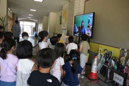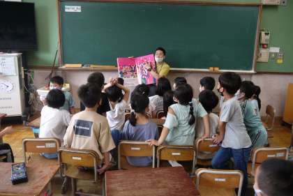 今日は1年生の先生が楽しいお話を読んでくれました。