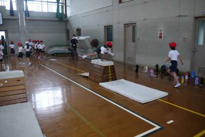 安全に学習できるように,とび終えたら次の人に手を挙げて合図を出し,約束を守って楽しく学習しています。