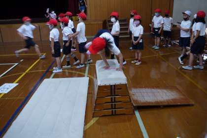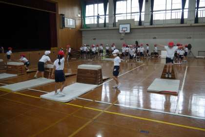 体育科の学習では,「とび箱遊び」の学習をしています。