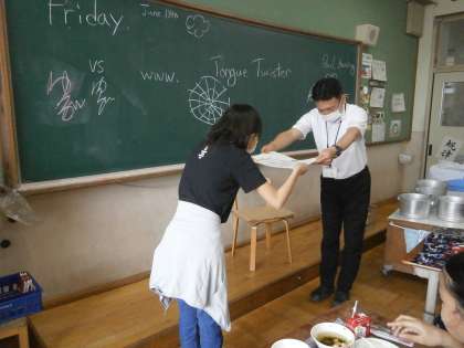 先週金曜日の給食時間,校長先生が6年生の各クラスを回って,直接子どもたちに賞状を渡してくださいました。