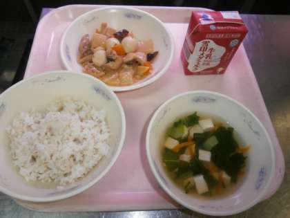 今日は大人気献立の1つ,「プリプリちゅうかいため」が登場しました。