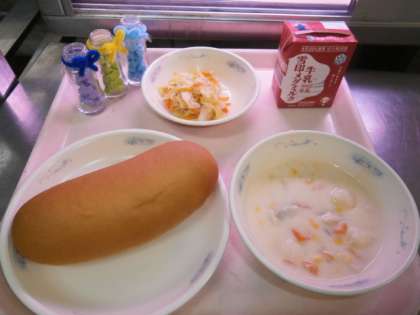 クリームシチューは給食にもよく登場しますが,毎回中の具材が変わっています。