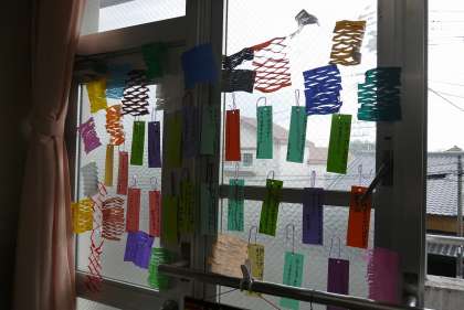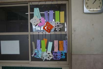 図工の学習で,七夕の飾りと短冊を作りました。