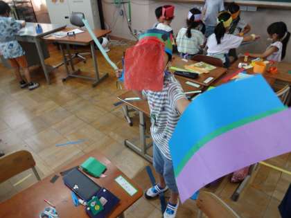 先週につくっていたヘルメットに合わせて,最後の変身をします。