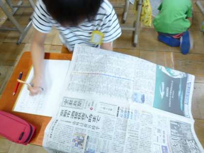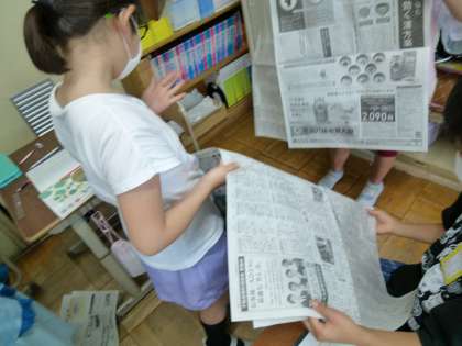 国語科で「新聞づくり」をする前にまず,新聞のひみつについて調べました!みんなで新聞を見合いっこ。。「見出しの大きさに違いがある」や「実際にあったことが書かれている」などたくさんの気づきがありました。