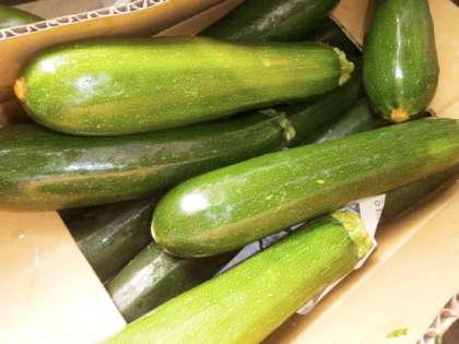 ズッキーニは見た目はきゅうり,食感はなすに似ていますが,かぼちゃの仲間です。
