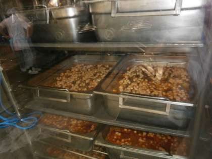 今日はボロネーゼをおおきな釜で煮た後,上にチーズをのせてスチコンでこんがりと焼きました!