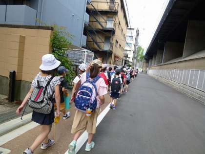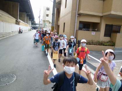 無事に全員藤森駅で降りることができました。電車内でのマナーも花マルです!徒歩で青少年科学センターへ向かいます。
