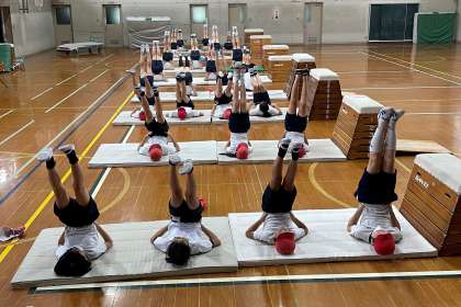 跳び箱の学習の合間に,こんな技の練習も始めました。