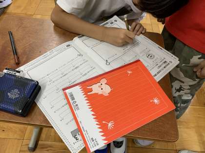 夏休みにエコライフについて調べたことをみんなで話し合い,身の回りのエコマークを探しました。ノートやのりなど,文房具にはたくさんのエコマークがありますね!!