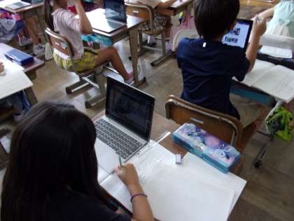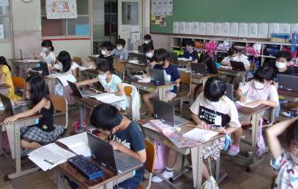 国語科「どうぶつ園のじゅうい」の学習で,動物園の獣医さんが動物たちにどんな治療をしているのか,図書室の本やGIGA端末で調べ学習を進めています。