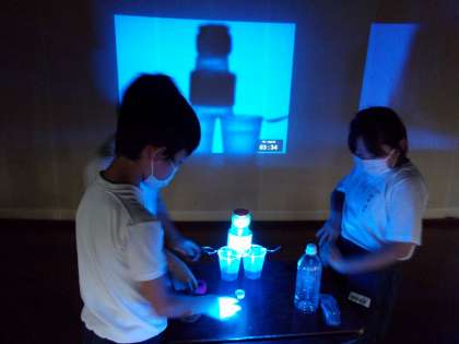 プロジェクターを使って,影をつくってみました。はさみや定規,のりなど身近なものをたくさん使いました。